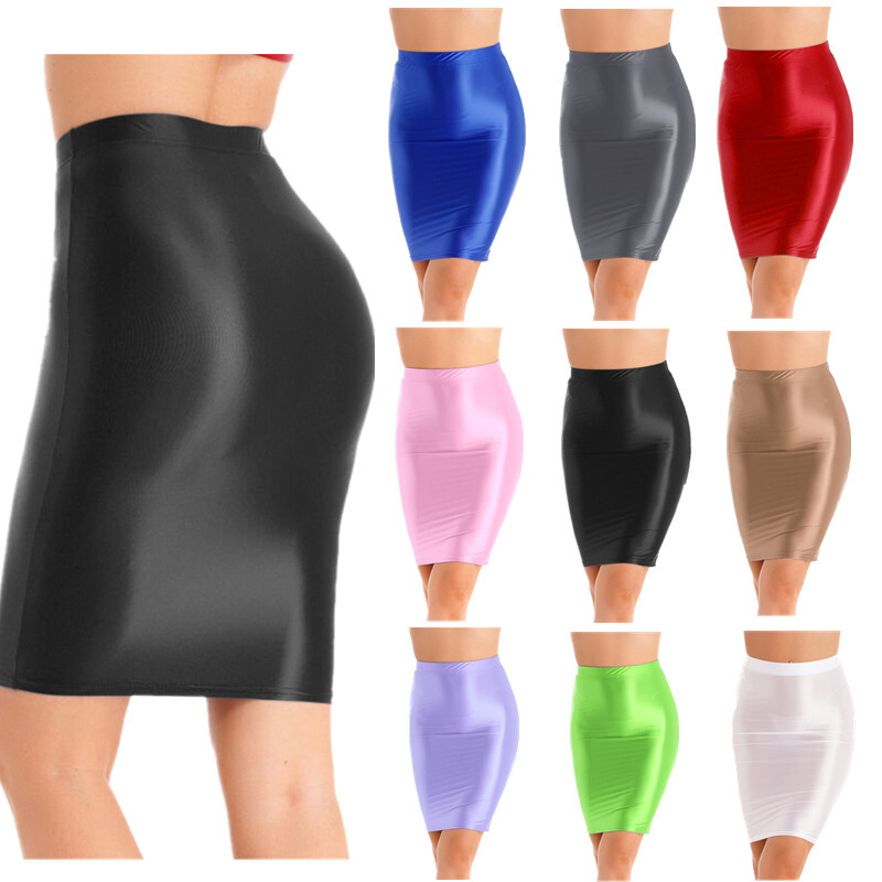 Women's Sexy Glossy High Waist Skirt Stretchy Party Tights Bodycon Pencil Skirts