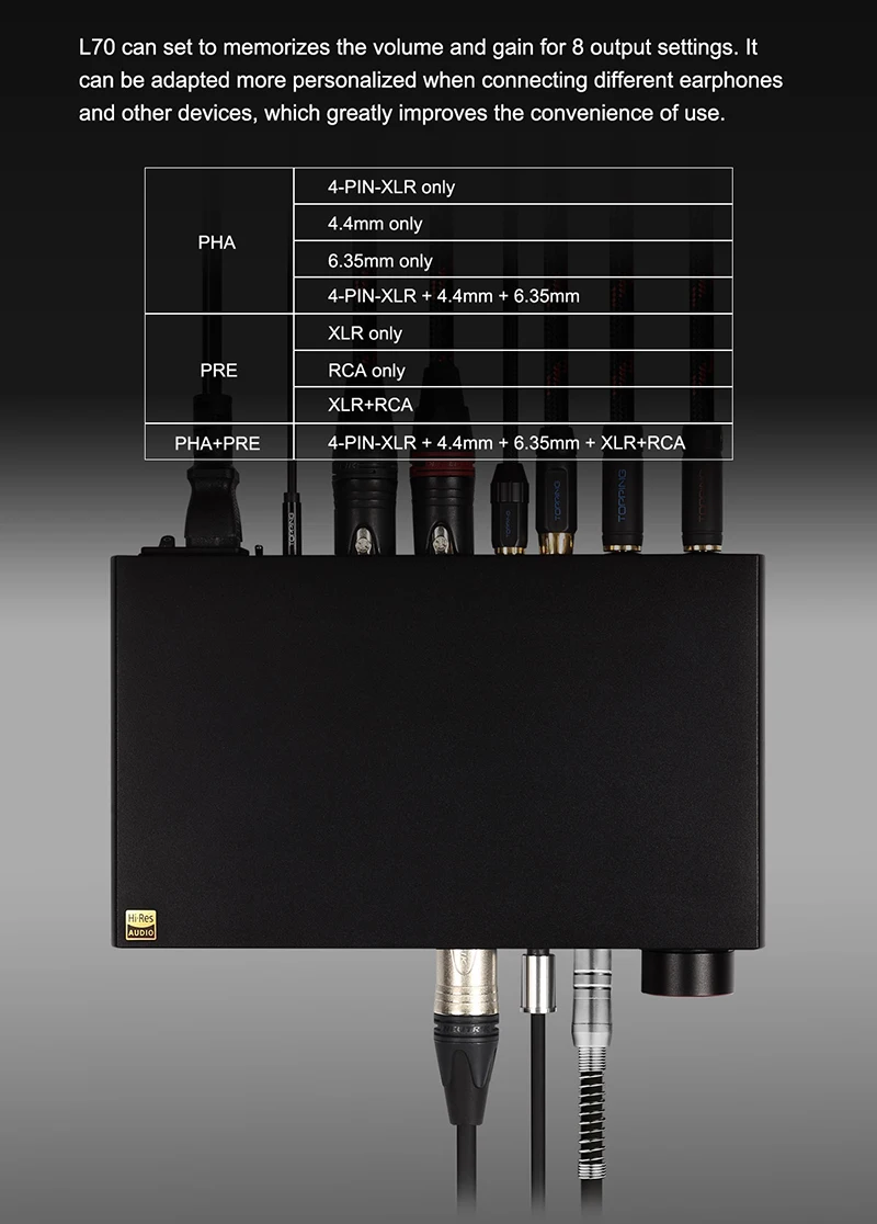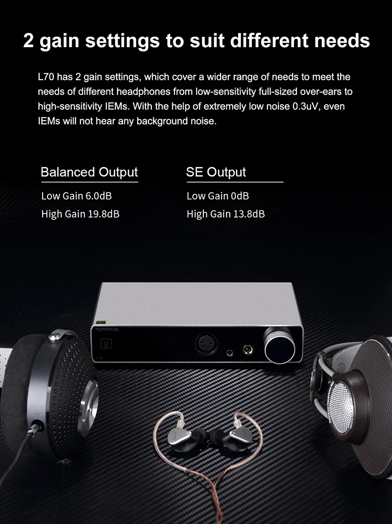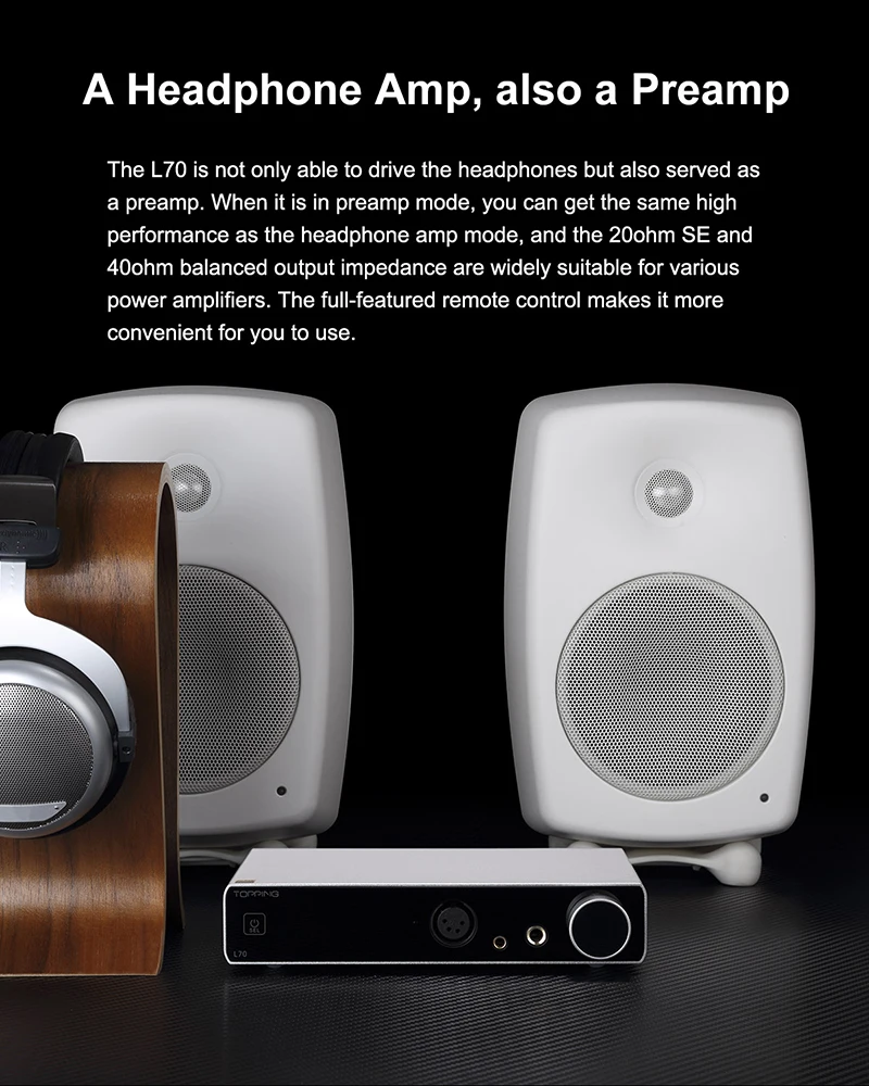 TOPPING L70 Audio Amp FULL Balanced NFCA Headphone Amplifier 4 pin XLR/4.4mm balanced/6.35mm SE Output NFCA Power Preamp 7500mW