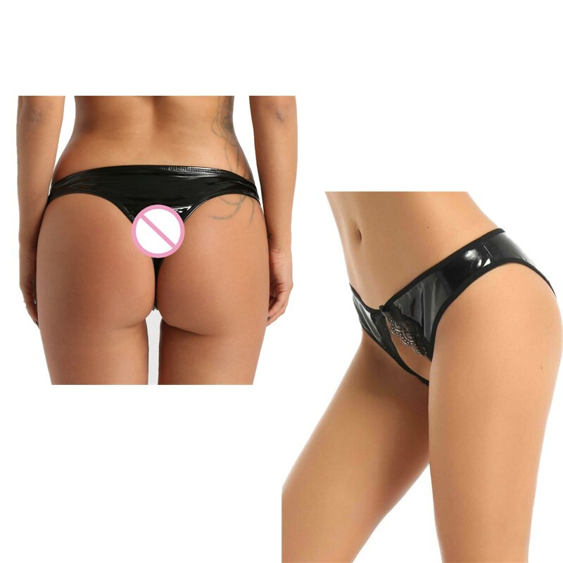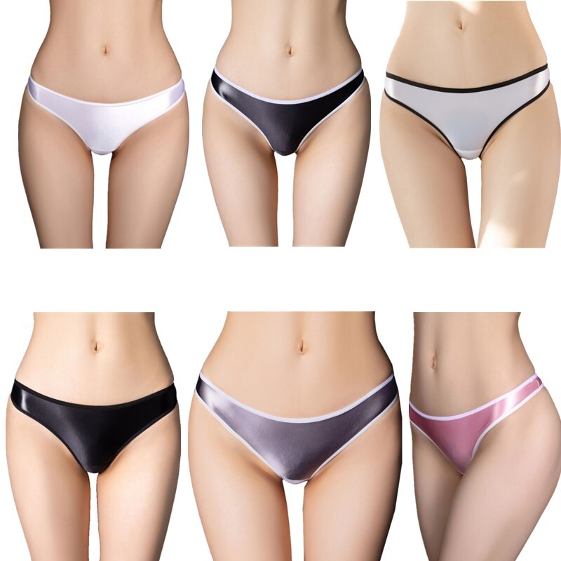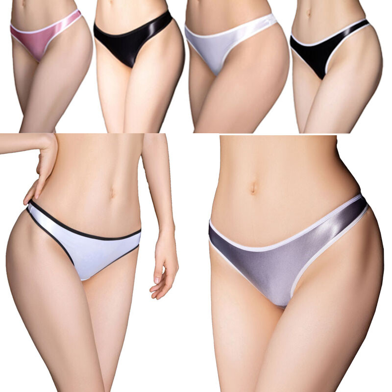 Womens Glossy Low Rise Briefs Solid Color Elastic Waistband Panties.