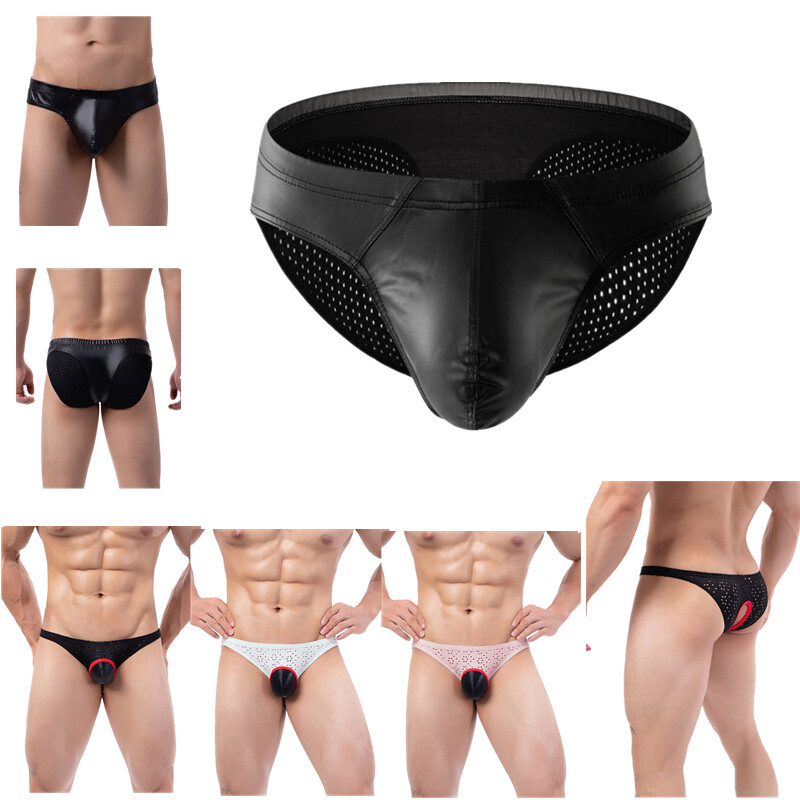 Men Sissy Satin Underwear Thong Lace Patchwork Panties G-string Briefs T-back.