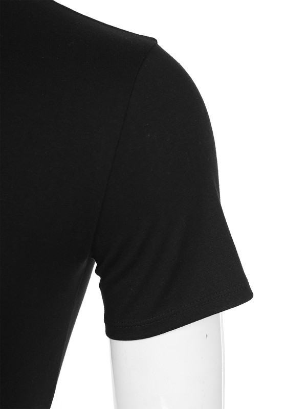 Short sleeves and round neck, men’s T-shirt design with three press buttons at crotch, solid color.
