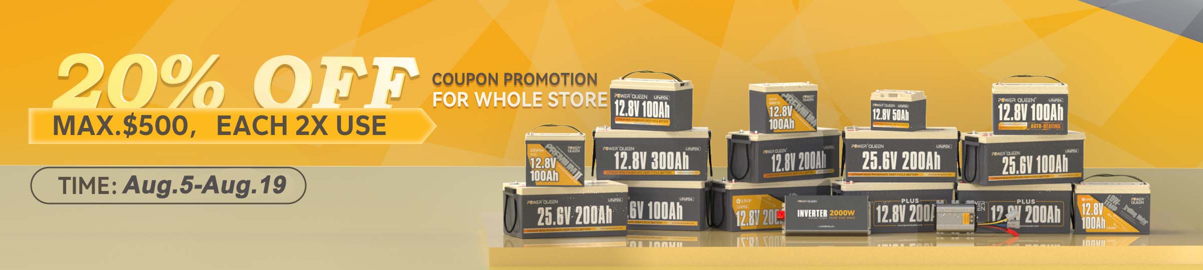 【3.84kWh USABLE ENERGY & LONGER PERFORMANCE】A full charge on Power Queen 12.8V 300Ah LiFePO4 Battery can support 3.84kWh energy for 90% appliances, like running a 200W heater mat nonstop for 19 hours in winter. This lithium battery has a great 300Ah capacity with a low self-discharge rate, the depth of discharge of our battery is about 100%, which provide 40% more usable power than the 300Ah lead-acid battery. If you want a satisfied big power, this battery would be your best choice!