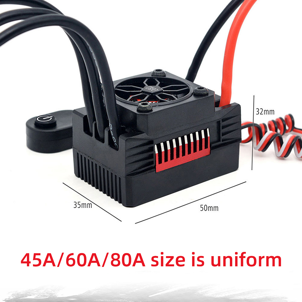 1.Water-proof and dust-proof for all-weather races; (Note: please uninstall the cooling fanbefore using this ESC in water; Clean and dry it soon after the use for avoiding the