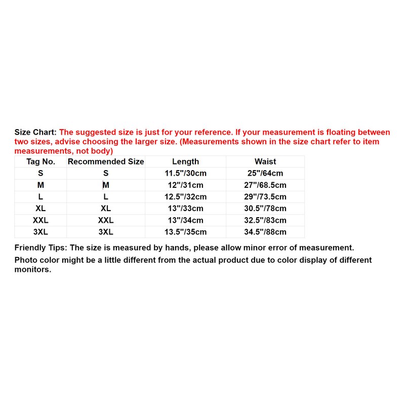 Friendly Tips: The size is measured by hands, please allow minor error of measurement. Photo color might be a little different from the actual product due to color display of different monitors.