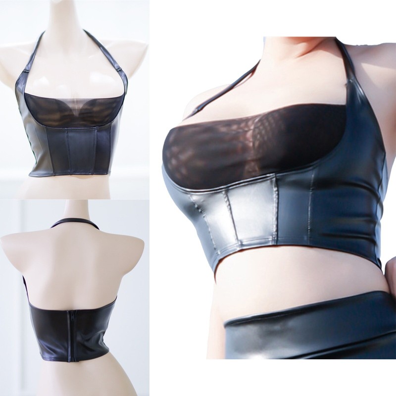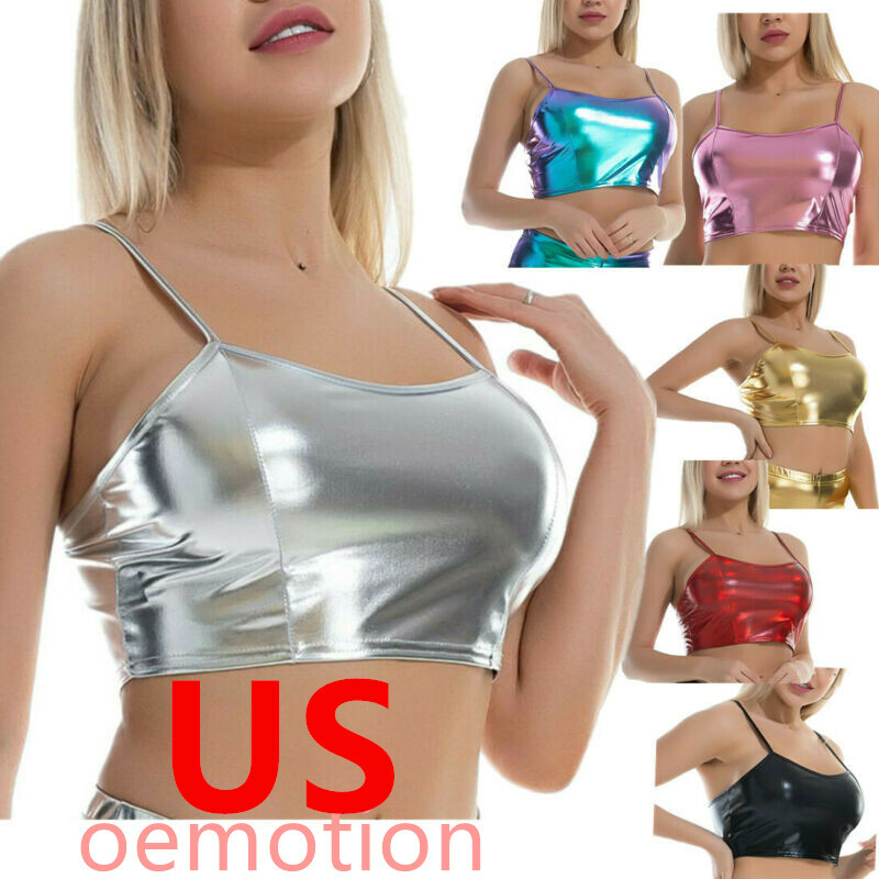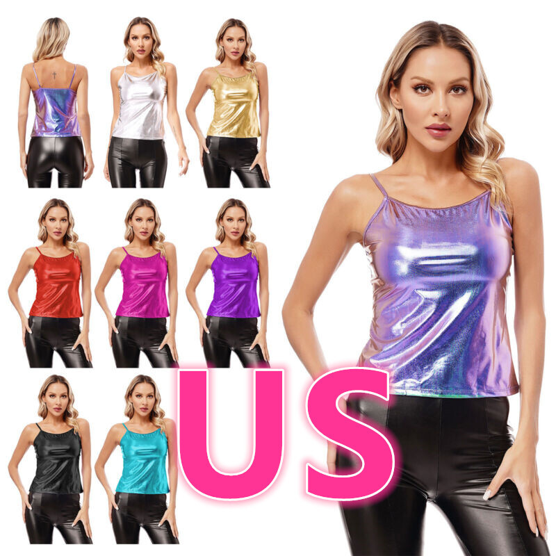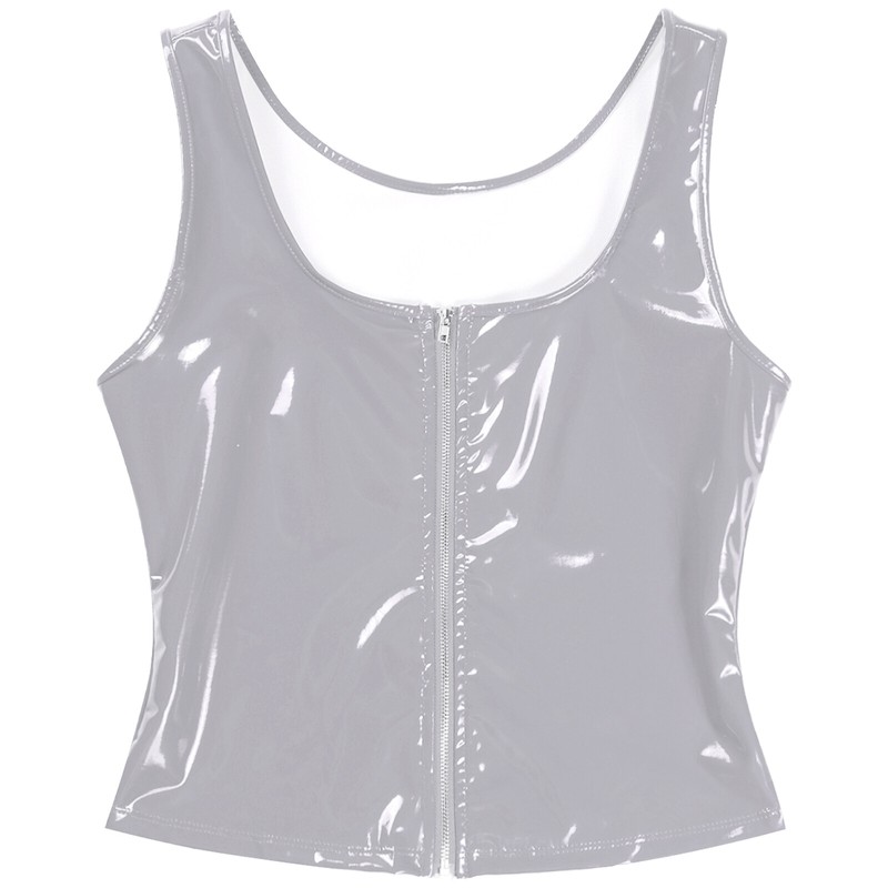 Womens Fashion Zipper Patent Leather Tank Top Wet Look U Neck Sleeveless Vest.