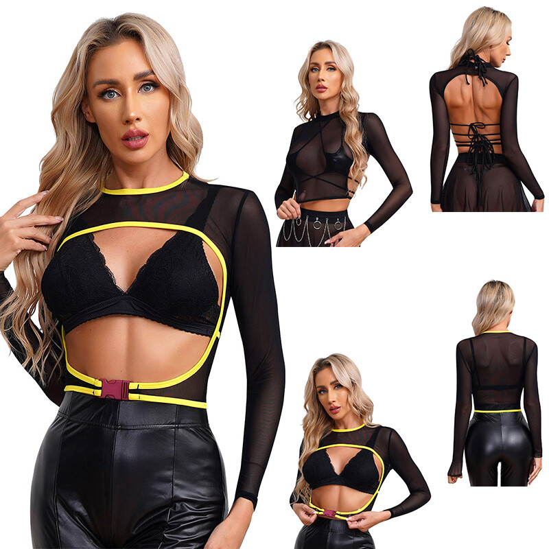 See-through mesh design camisole for women, backless and cropped length, highlights your charming curve.