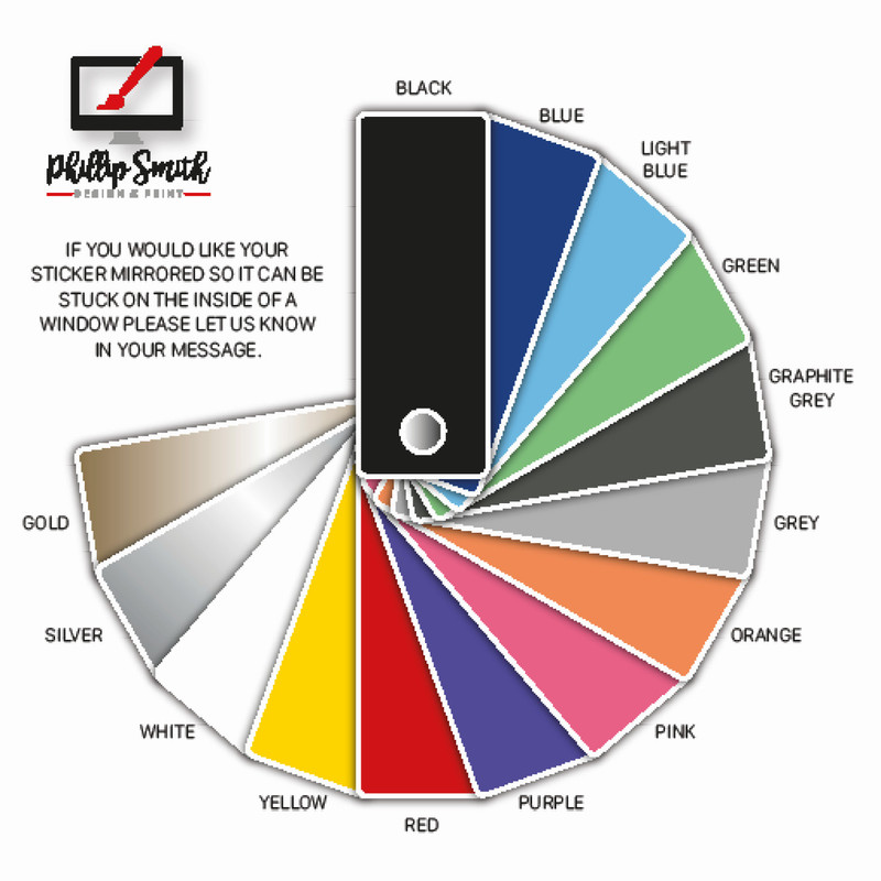 Printed from high-quality gloss self-adhesive vinyl. After printing, they are contour cut to size and shape. The vinyl is fully weather-resistant and waterproof ensuring a long-lasting and durable sticker.