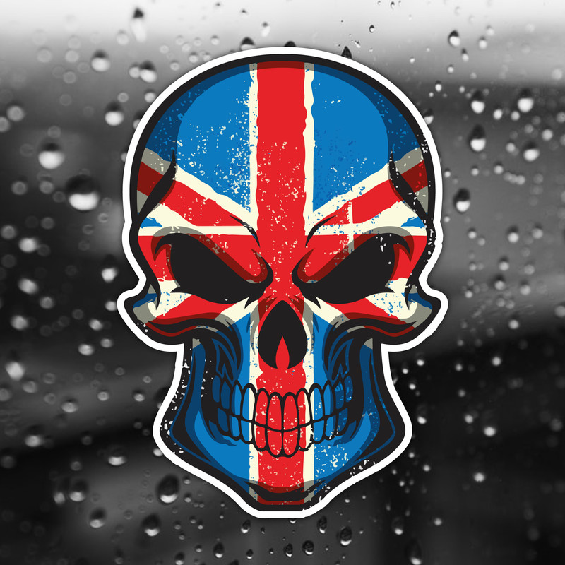 Gothic Biker Skull and Union Jack British UK Flag Vinyl Car Bike Sticker Laptop