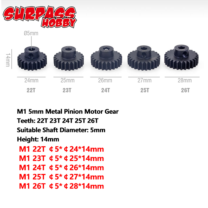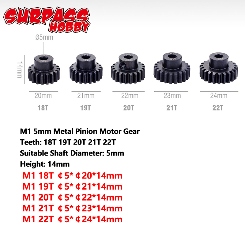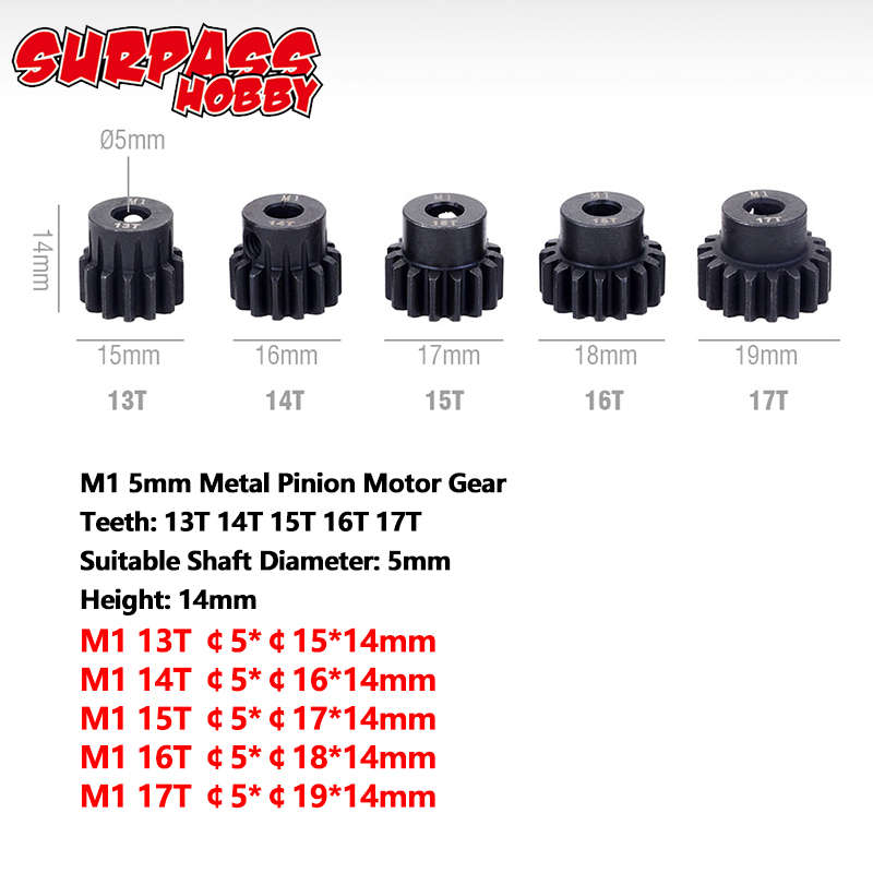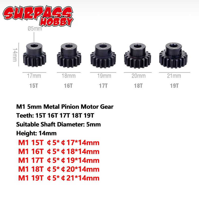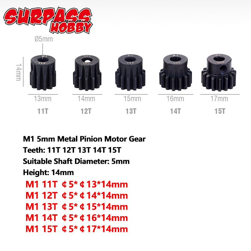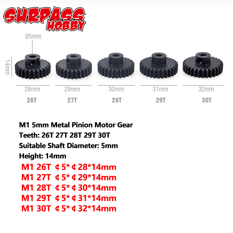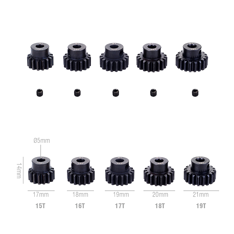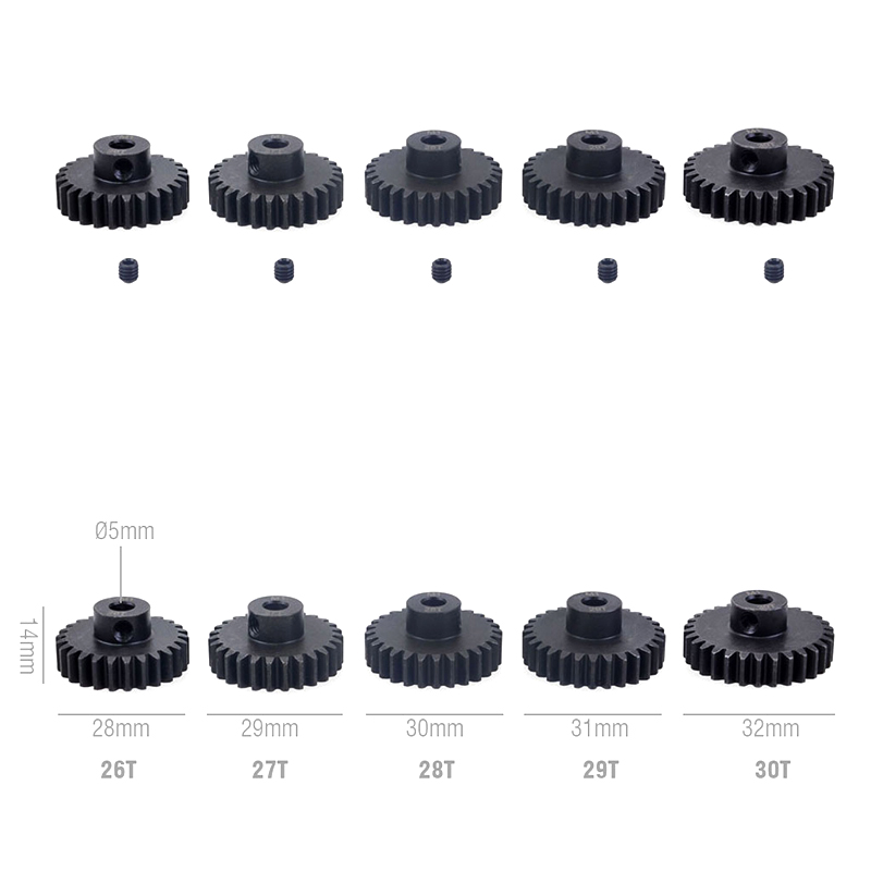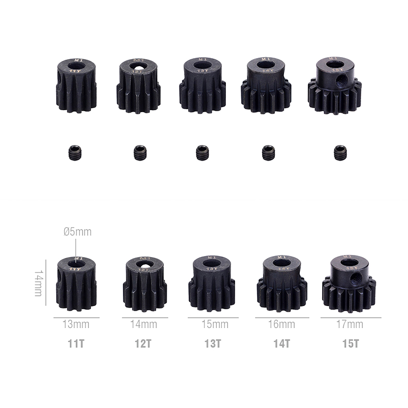 Metal Pinion Motor Gear Set Steel 5PCS M1 5mm 11T 12T 13T 15T 17T 19T 20T 21T 23T 25T 27T 29T 30T for 1/8 RC Car Monster Truck Brushless Motor