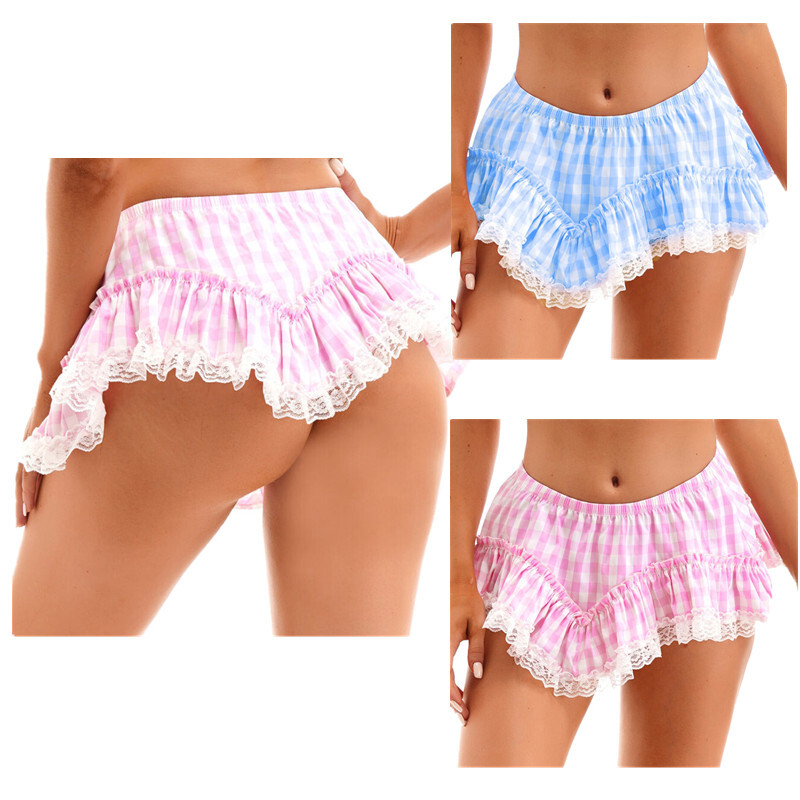 Front with see-through lace design, open butt and minimal coverage.