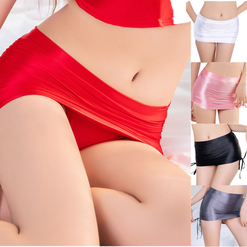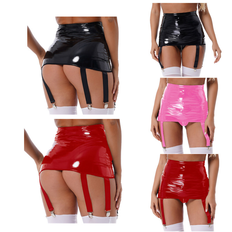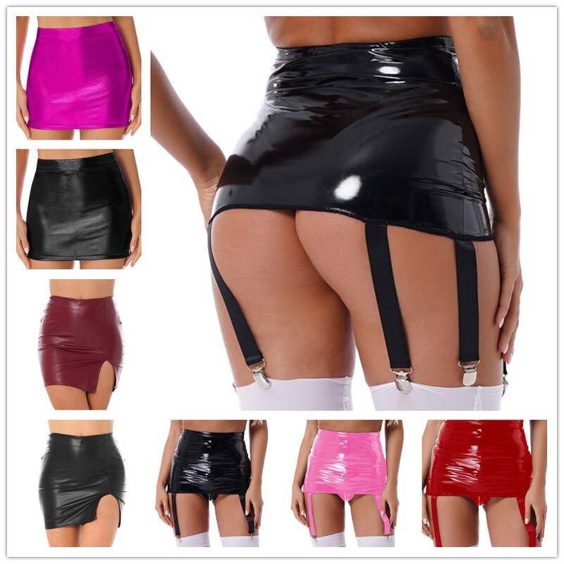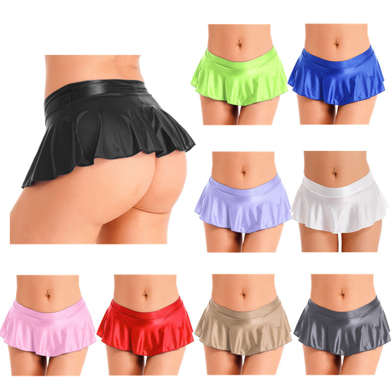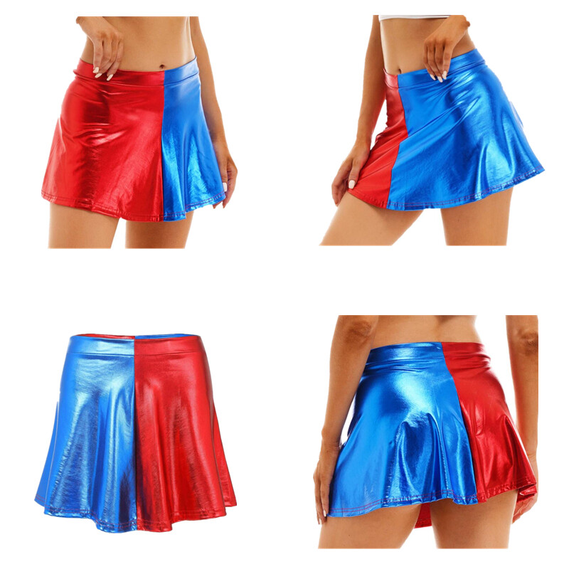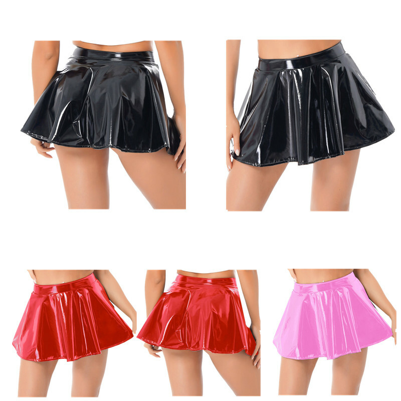 Women's Glossy Mini Skirt Sexy Wetlook Skater Dance Party Flared Skirts Clubwear