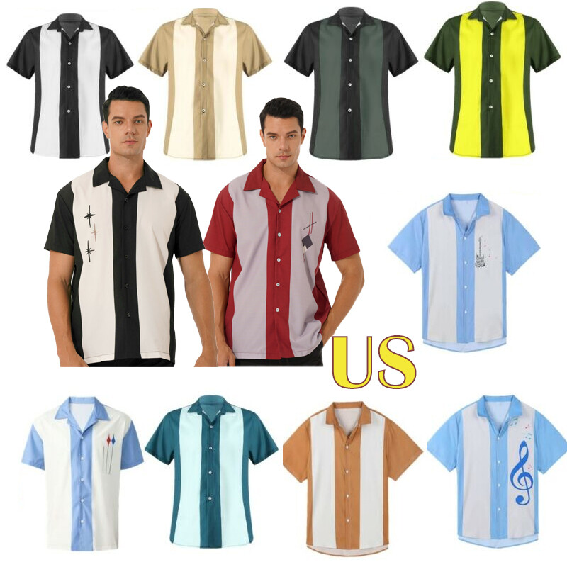 Mens Metallic Shiny Short Sleeve Shirt Fashion Notched Collar Button Down Shirts.