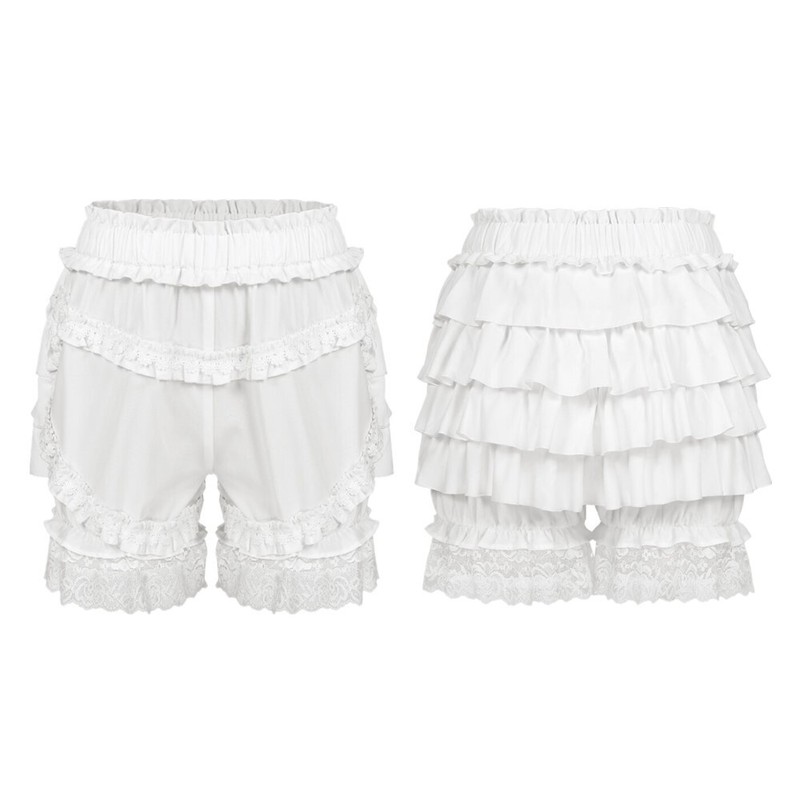Womens Layered Ruffle Bloomers Shorts Lace Trim Safety Pants Pajama Bottoms