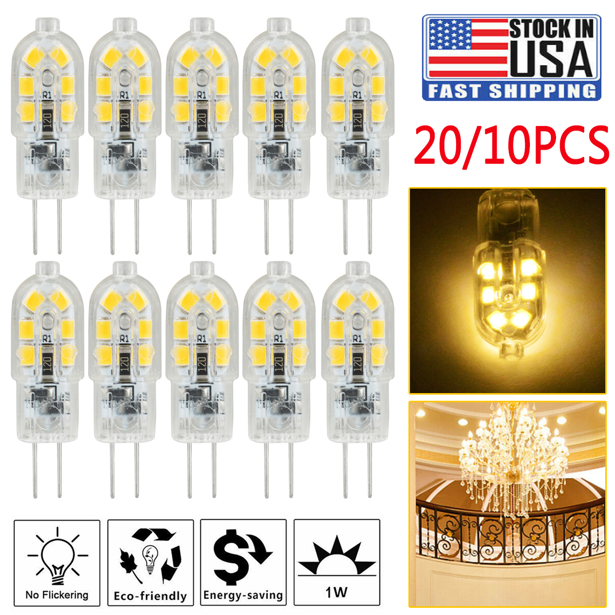 - 1W G4 LED Lights equivalent to 20W halogen bulbs, 6000K Daylight, providing cold and bright light. Save about 90% on your electricity bill. No lead or mercury, No UV or IR Radiation, safe for your home and the environment.