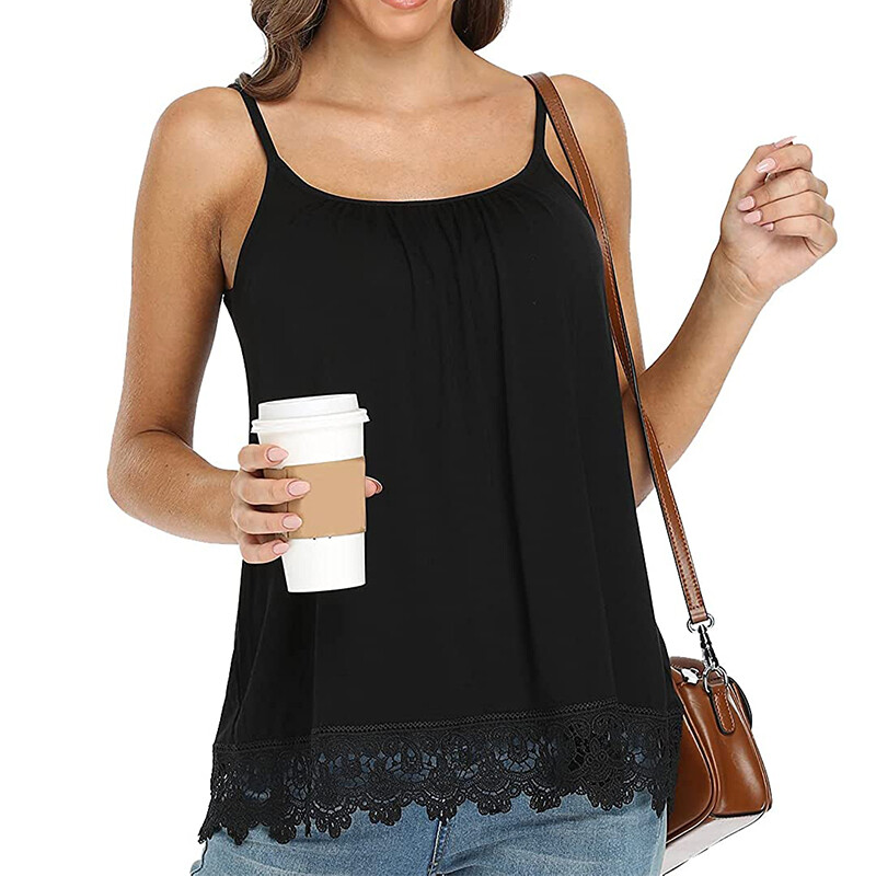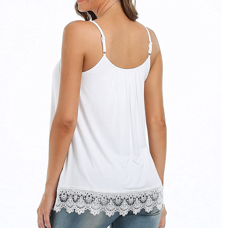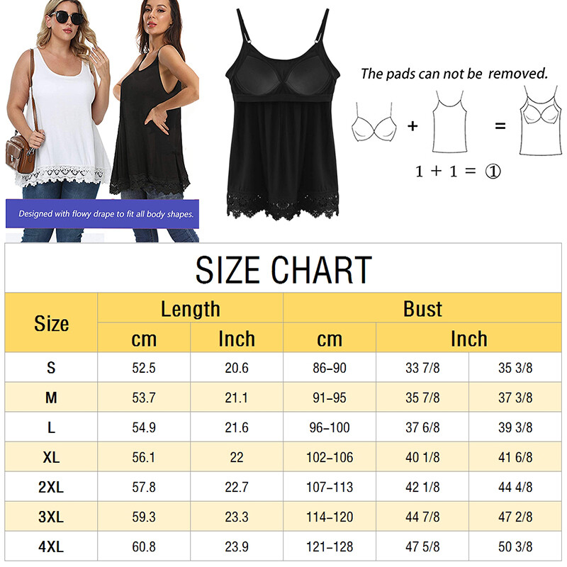 *Material: 95% Viscose + 5% Spandex (Cup: 95% Polyester + 5% Spandex).Soft and light,breathable, not see through, skin-friendly and cool,for extra skin comfort. great choice for hot summer days. *Adorable Lace Hem:Timeless lace has a crisp and refreshing finish on a tank silhouette that's designed to be figure-flattering and easy to dress up or down. *Adjustable Straps:You can find out the most suitable fit for you through adjusting the straps,which bring you the best wearing experience each time *Built-in bra:A vest with built-in bra provides lightweight support for the breasts. Wearing a camisole with a built-in bra will feel more secure. Every day after get off work, you can pull the items off your regular bra without having to go home. *Pros: The basic sleeveless camisole has a built-in bra and is perfect for most casual occasions with jeans, pants or leggings. It can also be worn with a cardigan, coat or sweater in winter.A lovely basic lace tank top that can be worn as loungewear and is also an elegant tank top for women. One-piece bras make it 10 times easier to wear. And if they get soiled in the wash, they're easy to fix.