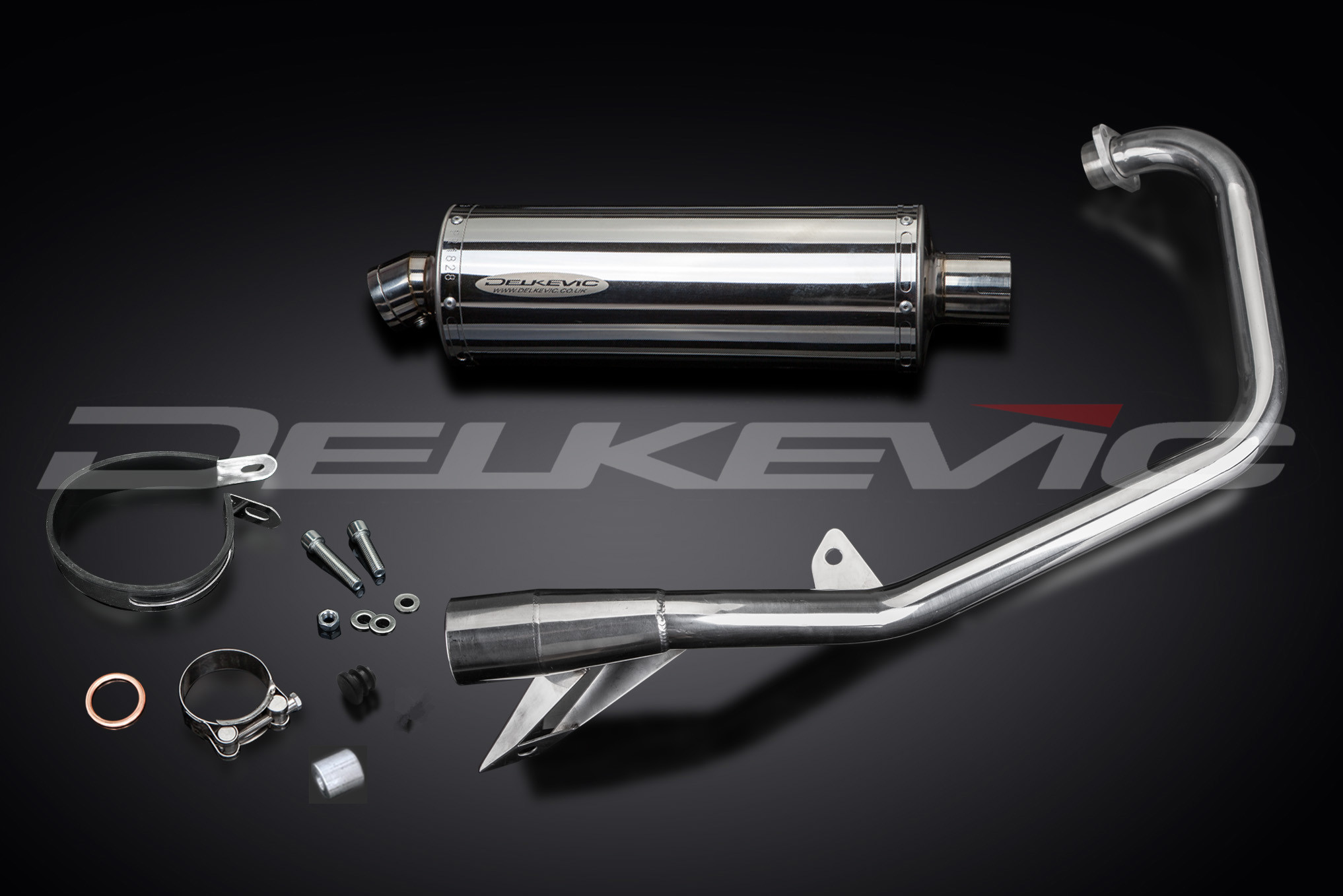 - This set includes - Delkevic down pipes, silencer with a removable baffle, strap, clamp, and fixings .