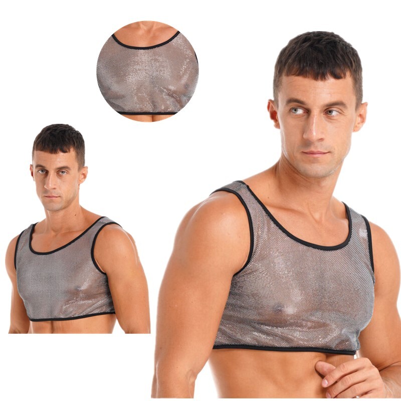 Men’s fashion muscle tank top vest T-shirt, pull on closure.