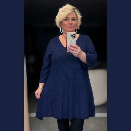 PLUS SIZE FASHION AND FOOTWEAR - NOW GO AND ROCK THOSE CURVES WAFFLE PATTERN LONG SLEEVE SWING TOP A-LINE Dispatch on this item is 3-5 working days Material: polyester / elastane long sleeve waffle effect material round neck swing top very stretchy LENGTH 35.5 INCHES - slight variations with size long length a-line made in the UK plus size tops tops from Rockthosecurves p+p bags are made from recyclable material