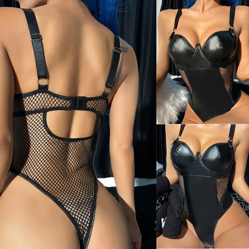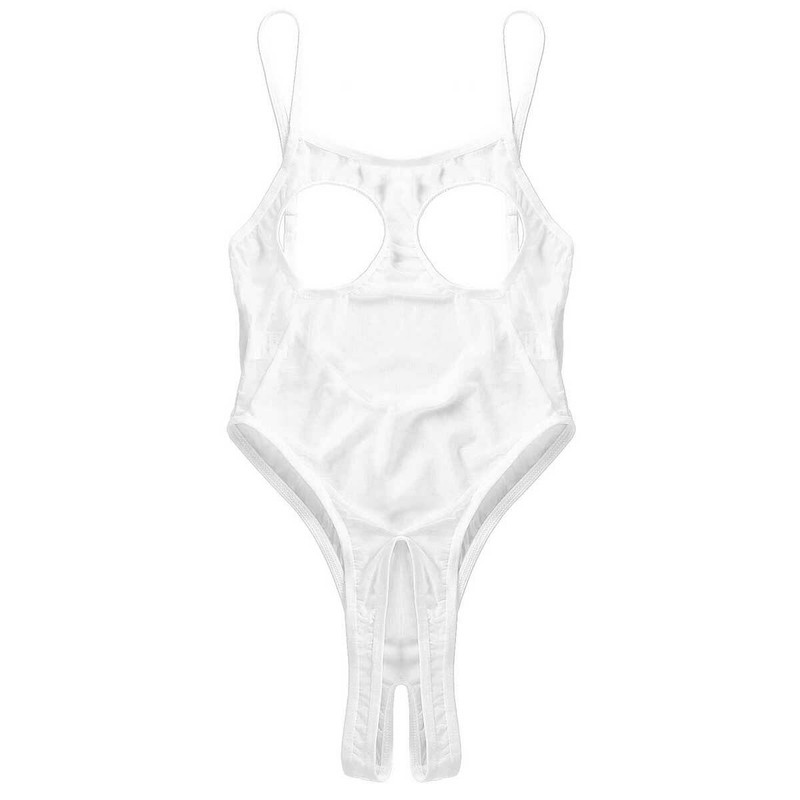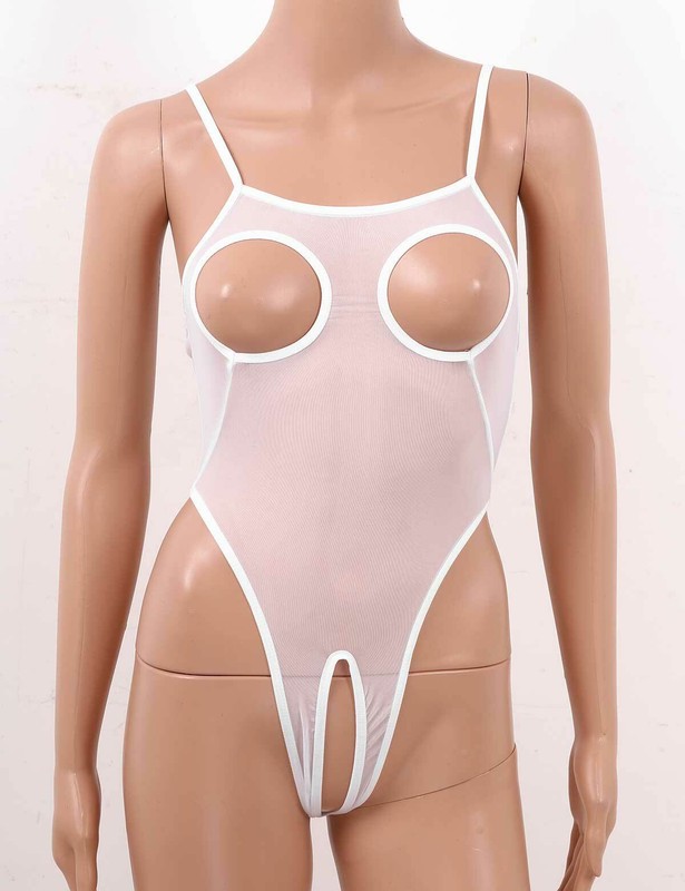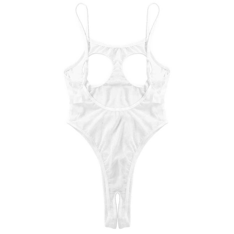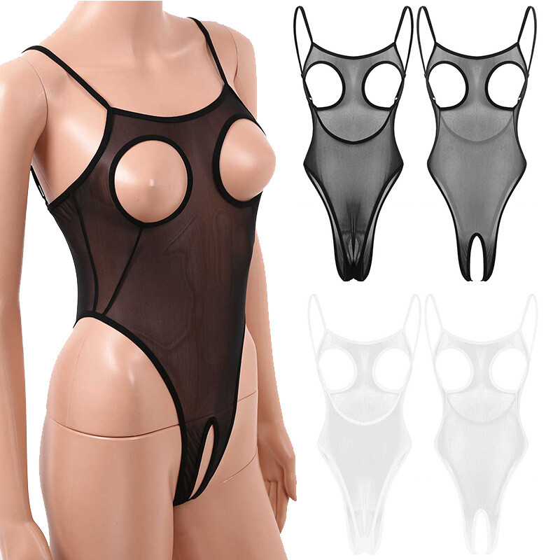 Womens Sheer Mesh Camisole Bodysuit Open Cups Crotchless Leotard Thong Lingerie