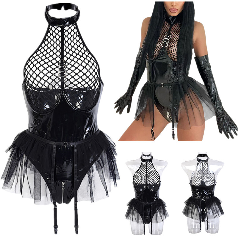 Set Include: 1x Bodysuit, 1x Collar, 2x Wrist Cuffs