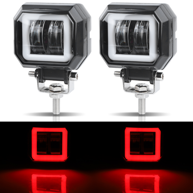 2Pcs 20W LED Work Light with Angel Eye Halo Ring (Red Halo)