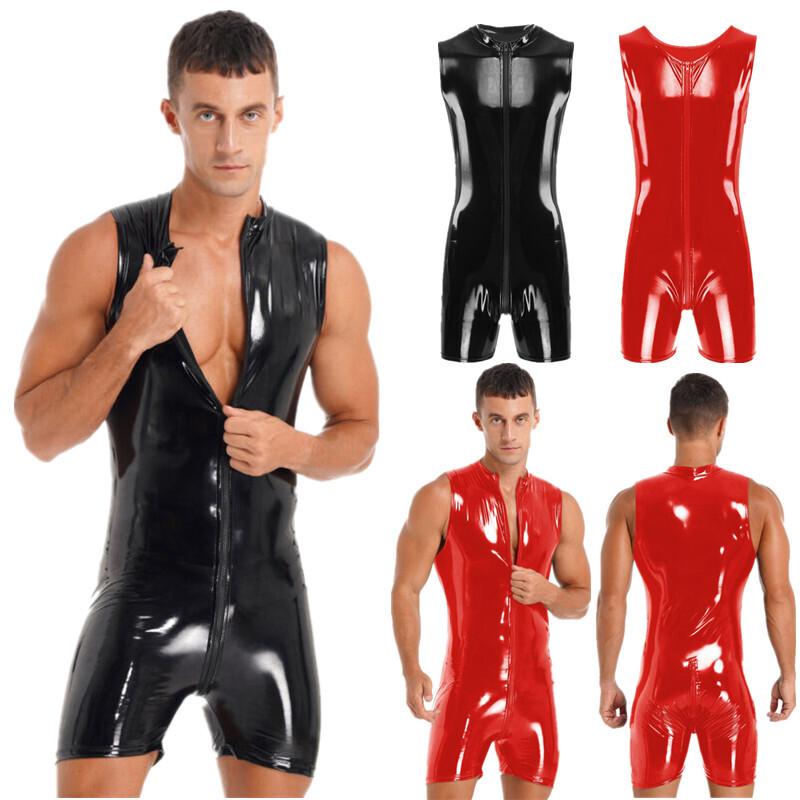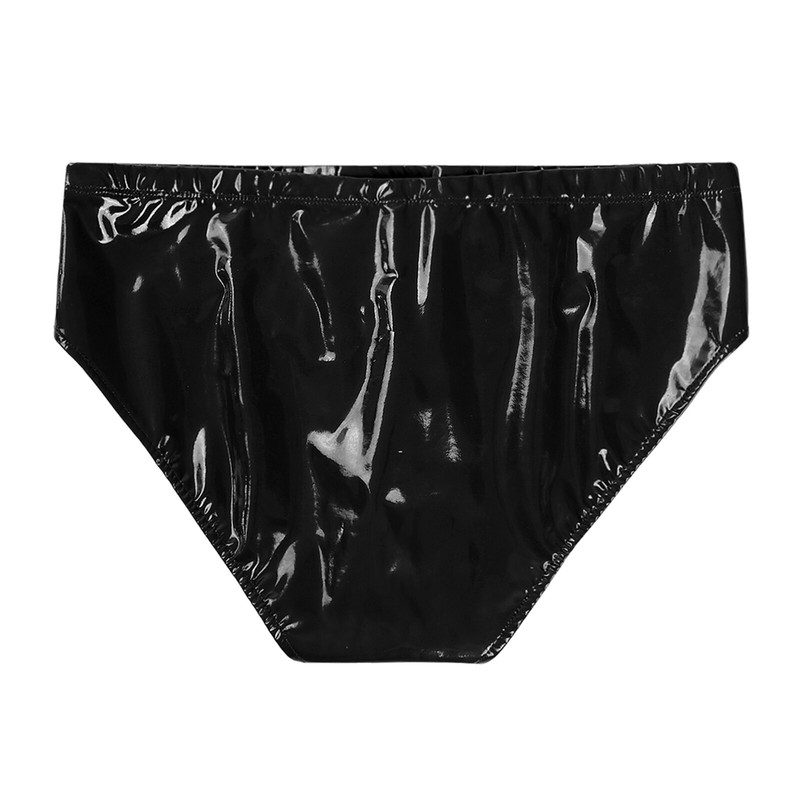 Men's Shiny Bikini Briefs Wet Look Patent Leather Low Waist Underpants Clubwear