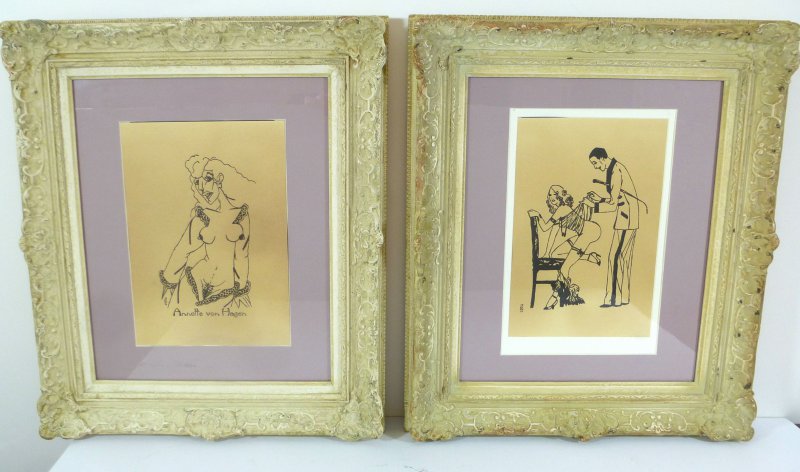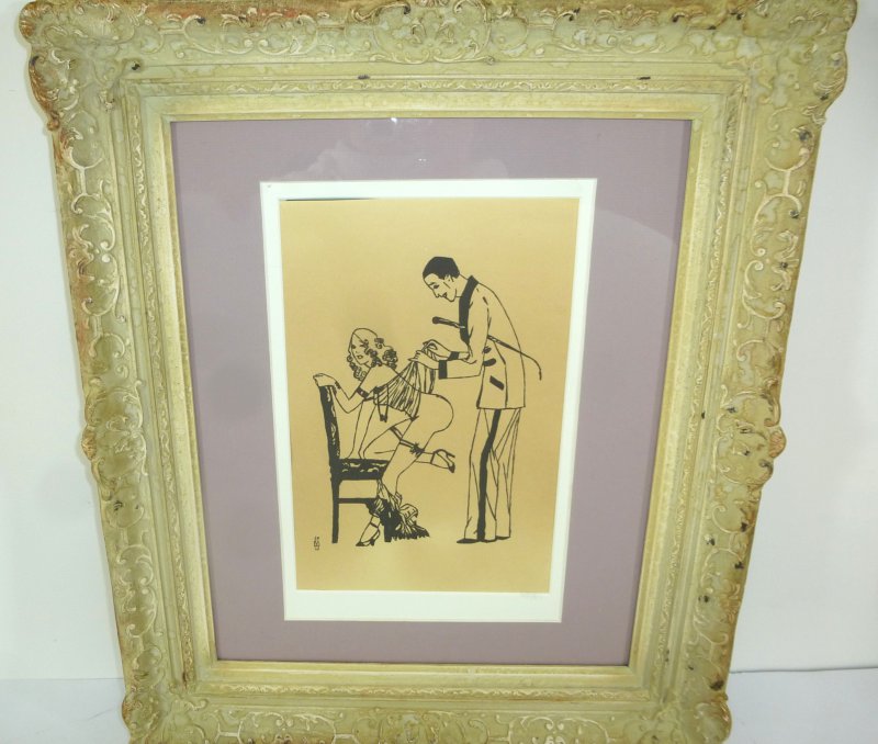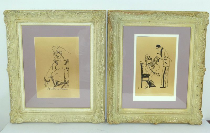 From a private collection on behalf of a customer is offered: Pair of art deco paintings in frames, pencil, gouache. Monogrammed, dated 1923 (see photos). External dimensions: approx. 55x46.5cm. Inside dimensions: approx. 39.5x32cm. Good used condition, age-related signs of wear (see photos) There is a possibility approx. 40 matching pictures available (remnants of the Beate Uhse Museum), please inquire if you are interested