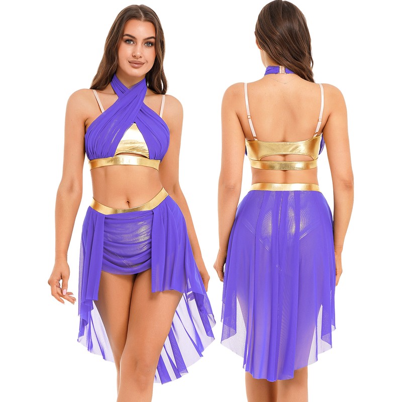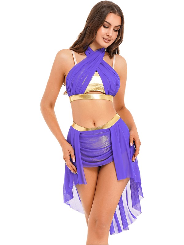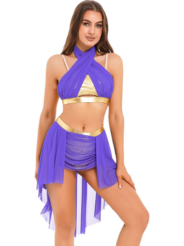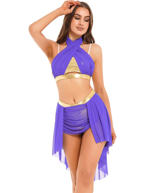 Womens Two-Piece Modern Dance Performance Costume Crop Top with Skirt Outfit