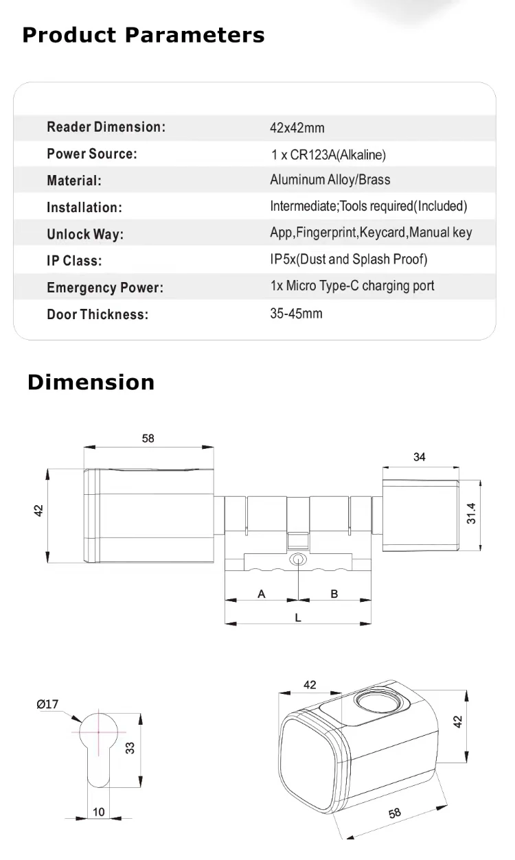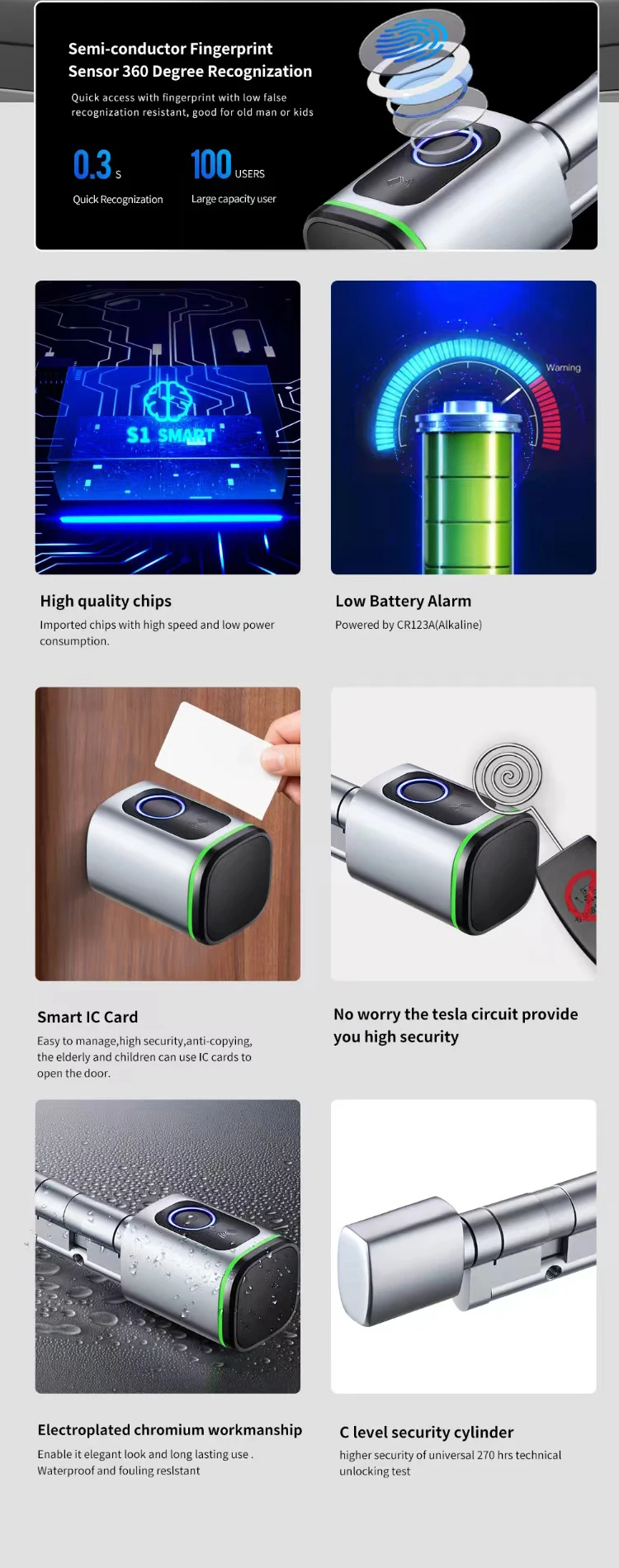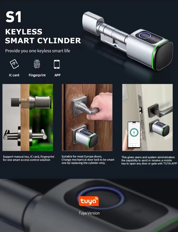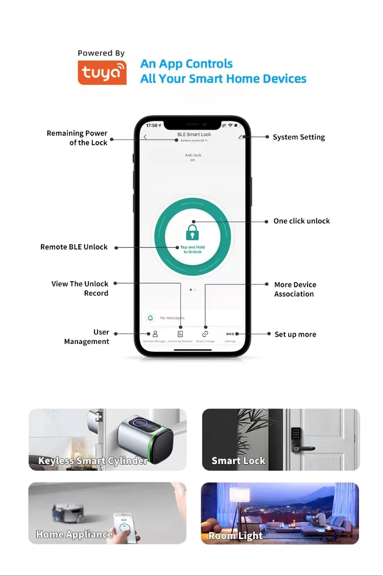 Access by TUYA APP or TTLock APP, Fingerprint, Card and key, The auto-lock function would help you if you forgot to lock your door