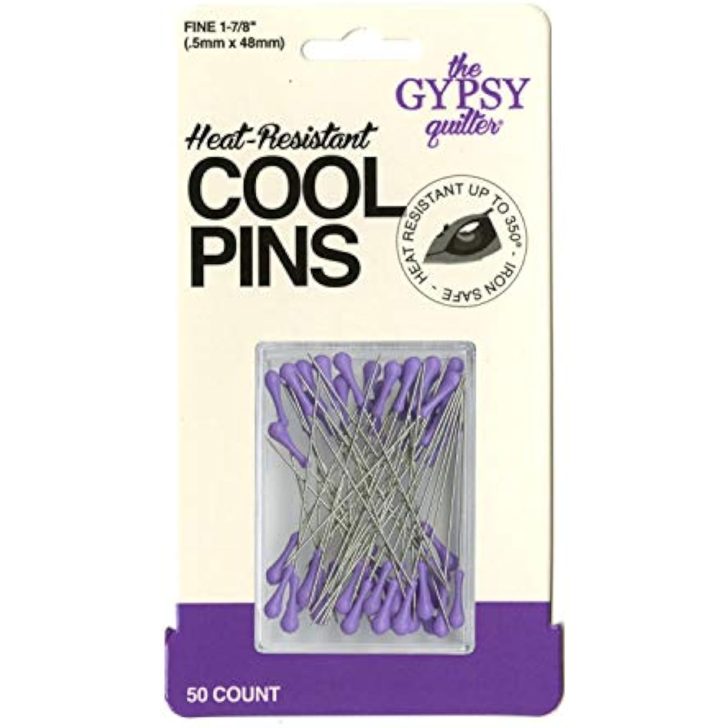 Cool pins are just that - COOL! They are heat resistant up to 350 degrees Fahrenheit so you can iron over them without melting the tip of the pin or burning your finger. The large pinheads are easy to grasp and manipulate - perfect for all ages. And since the tips of the Cool Pins are colorful, they are easy to spot and remove - no pins left behind. Cool pins are sharp and fine. At just .5 mm, they will not leave holes in your finished project. 50 pins come in a reusable storage box. Available in 3 colors: Gypsy Purple, Bohemian Blue and Fortune Fuchsia * Color: Purple * Made of: Metal * Use: Pins * Size: 1-7/8in long * Included: 50 Pins