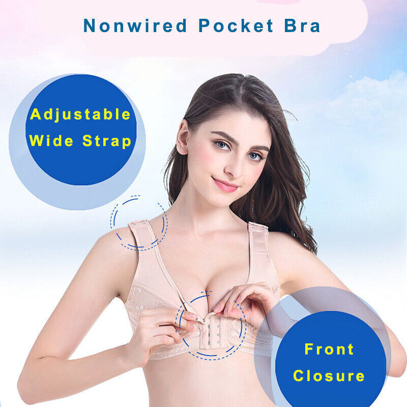 Sports Bra Mastectomy Bra Pocket for Breast Pad Insert Wireless Front Closure