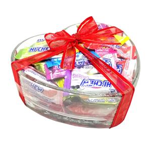 Our special Valentine's Day collection of Hi-chew candies in beautiful reusable heart shaped glass bowl wrapped with elegant red ribbon. There are approximately 12 assorted flavors of Hi-chew most popular flavors and some hard-to-find flavors, total of 48 pieces included. Each piece is individually wrapped. Flavor ratio will vary.