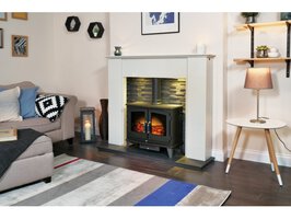 The Adam Woodhouse is a bold electric stove whose double doors and sleek, cast effect finish will bring sophistication and character to any focal point. Combining the homely feel of a log burner with the functionality of an electric fire, the Woodhouse is a truly high quality option. Supplied with angled decorative stove pipe.