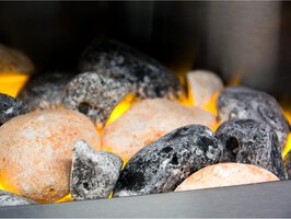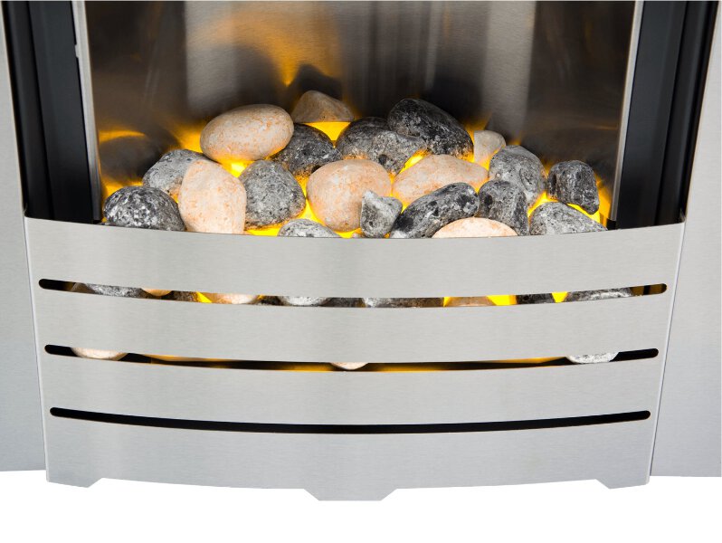 - Realistic pebble bed with LED ambient glow effect only setting.