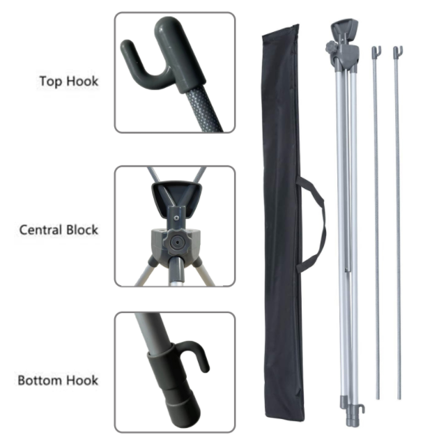 The bottom is a stable tripod cross bar, aluminum structure, strong and durable. This display stand is lightweight, easy to install, convenient to trade show display.
