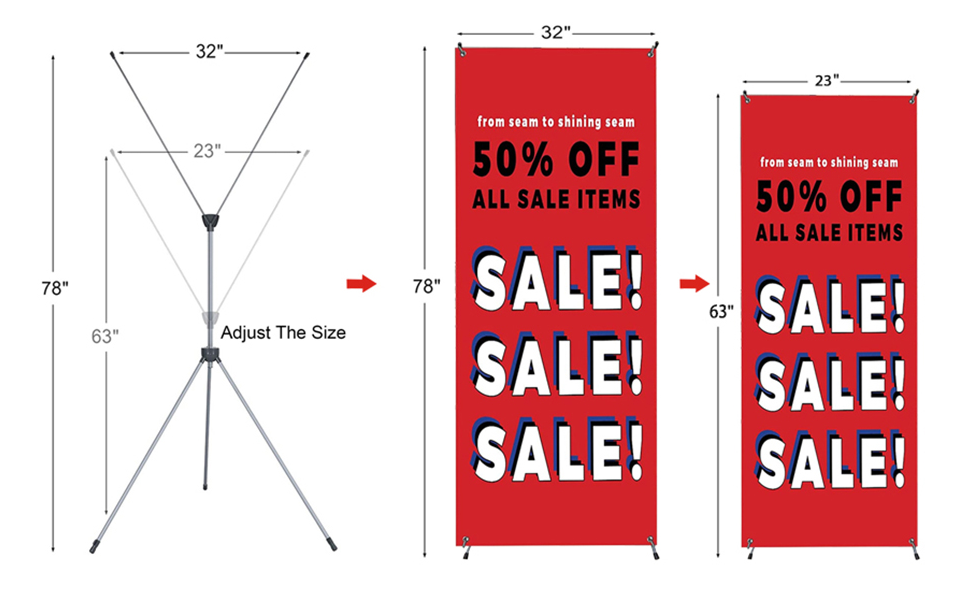 Premium Adjustable X-Frame Banner Stand 23"x63" to 32"x78"