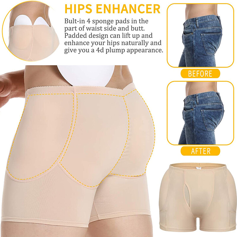 Specification 1. Color: Black/Beige 2.. Material: 90% Nylon,10% Spandex 3. Underwear Size: S-3XL 4. Feature: Breathable Control Waist/Tummy Control/ Seamless, Breathable, Lightweight, Tummy Control padded panty & butt lifter Shaping for women Butt enhancement padded boyshorts which lift and shape your hip for a natural look; Provide a great boost and rounding affect to the hip and booty area. Give it a lift with our curve enhancing boy shorts padded panties, which instantly build your sexy hourglass figure, and visibly reduce waistline and back bulge. Removable butt lifting pads fit inside individual pockets & stay firmly in place. Hip-to-butt cloth covered foam hip and butt pads. Butt lifter shaper panty is easy to wear everyday for working, dating, social outgoing, dancing etc. Once put on, it instantly makes your butt look bigger and more beautiful.