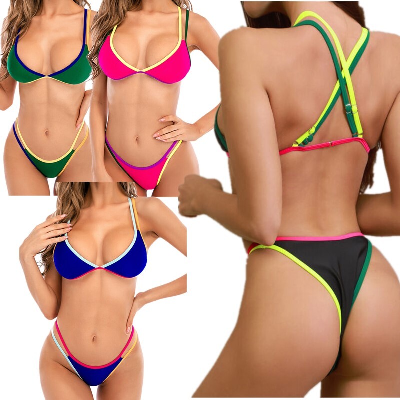 Womens Metallic Shiny Bikini Lace-up Bathing Suit Swimsuit Swimwear.
