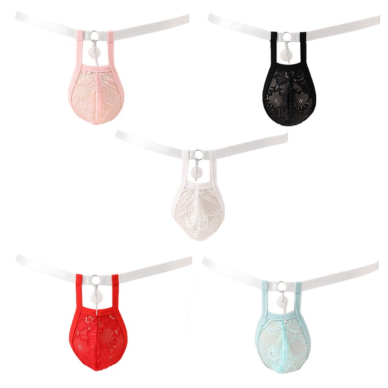 Mens Sexy Thongs Briefs Lace Bowknot Hollow Out G-string Sissy Panties Underwear