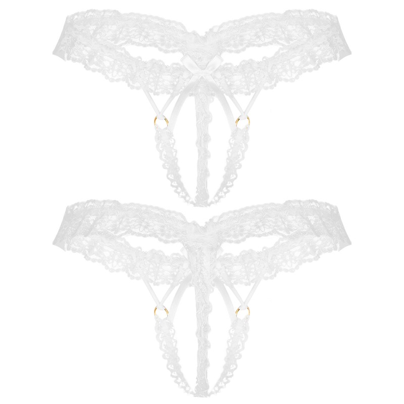 Mens Frilly Lace Thongs Bowknot Elastic Waistband G-string Crotchless T-back.
