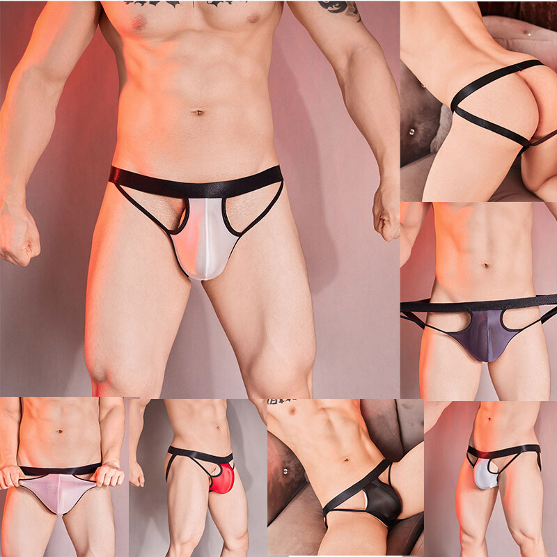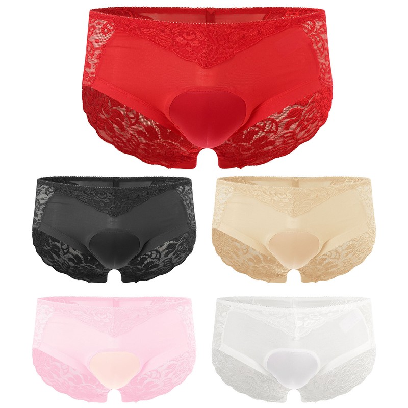 Men Sissy Satin Underwear Thong Lace Patchwork Panties G-string Briefs T-back.
