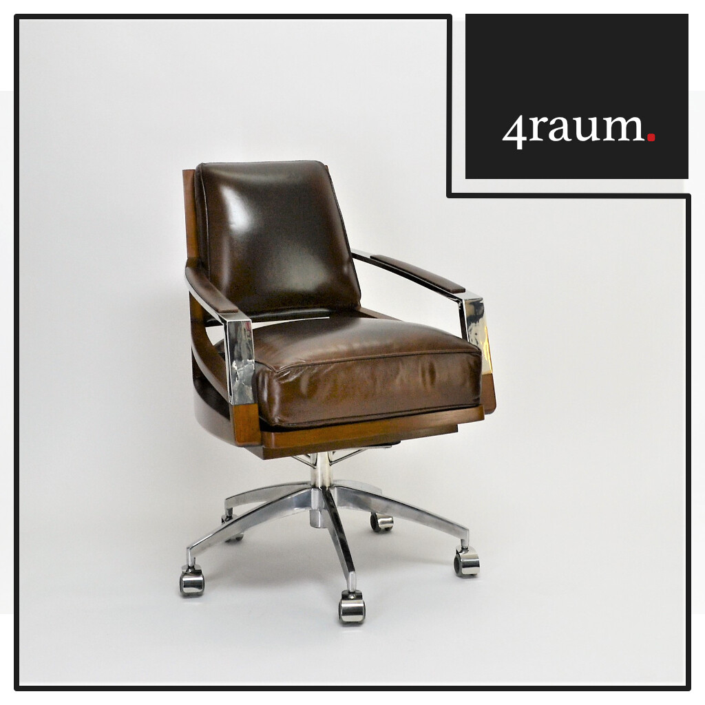 Sofort Kauf Bürostuhl im Aviator-Stil "Michél" Sessel Leder Retro Vintage Art Deco Chef Holz