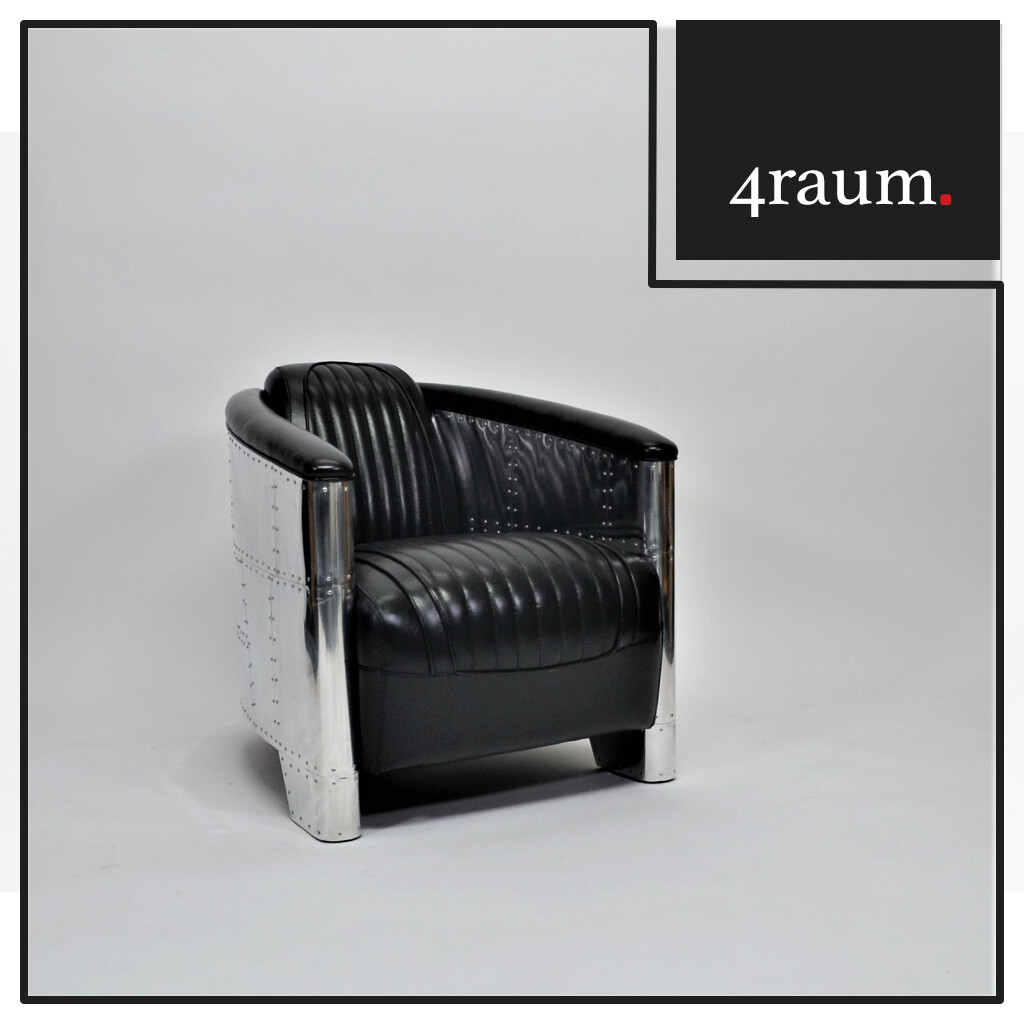 Sofort Kauf Clubsessel im Aviator-Stil "James" Lounge Design Chrom Art Deco Leder Cocktail