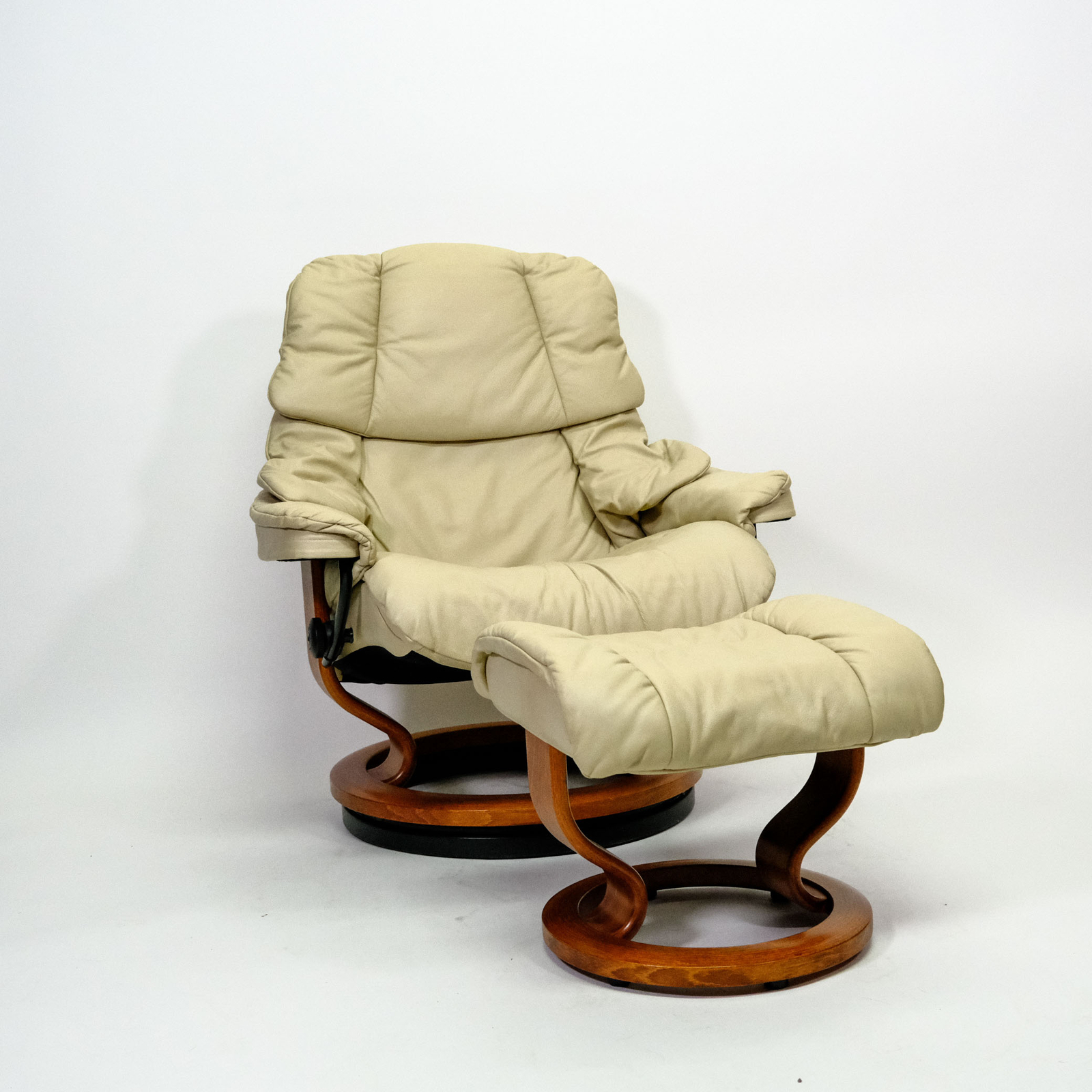 Sofort Kauf Ekornes Stressless Reno (L) mit Hocker Relaxsessel Fernseh Leder beige bequem