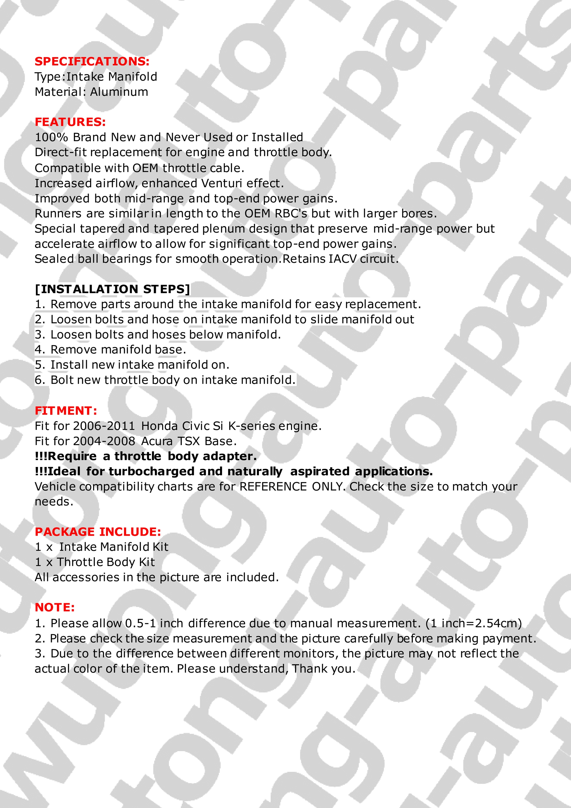 K-Series Intake Manifold 70MM Throttle Body For Honda Acura K20 K24 K24A2 K20Z3