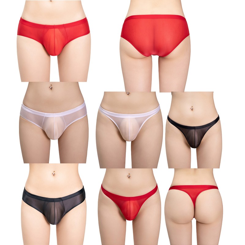 Mens Sexy See Through Underwear Micro Thongs Stretchy Low Rise Hip Briefs Bikini