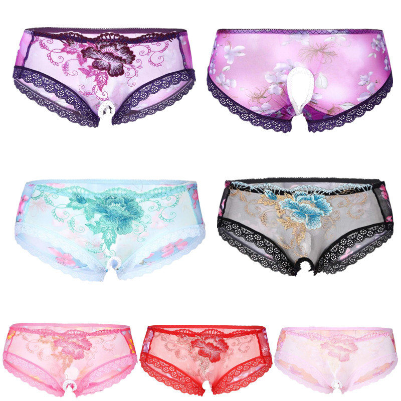 Men Sissy Satin Underwear Thong Lace Patchwork Panties G-string Briefs T-back.