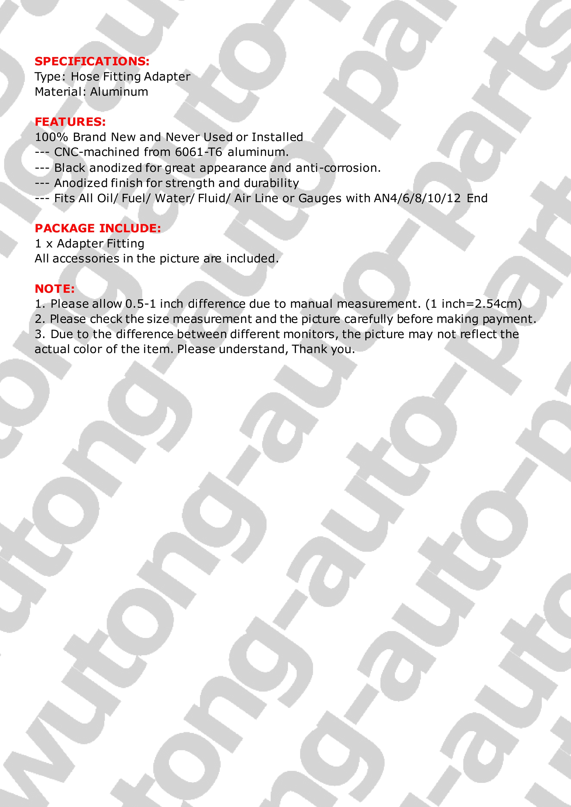 1.Please inspect your order upon receipt.