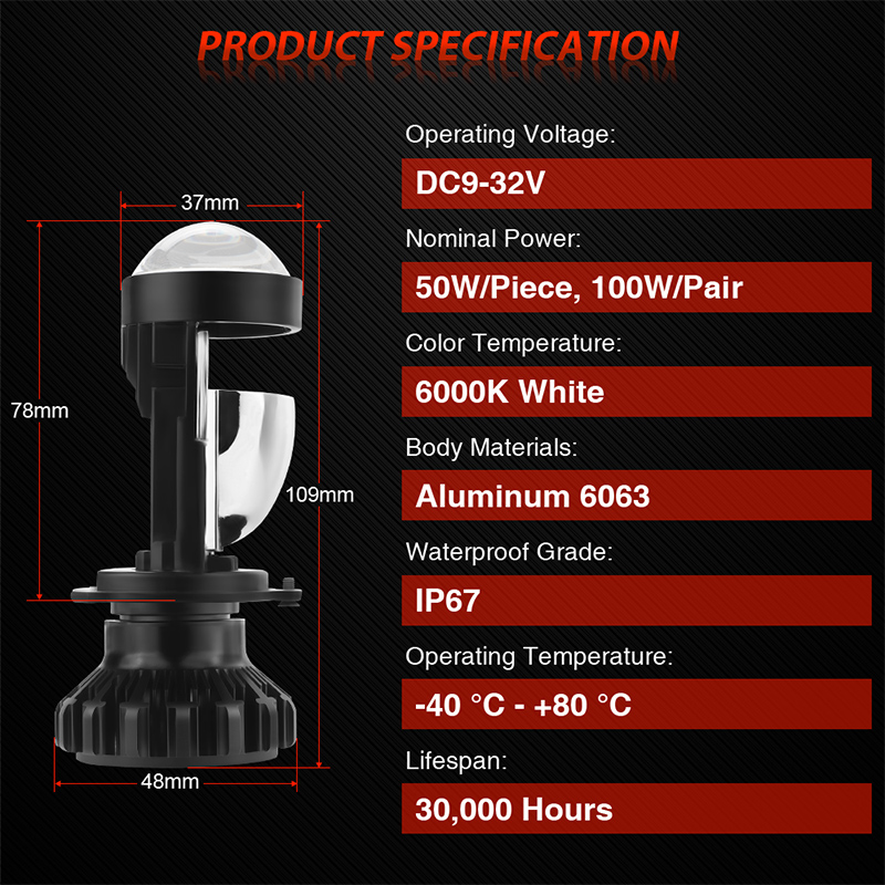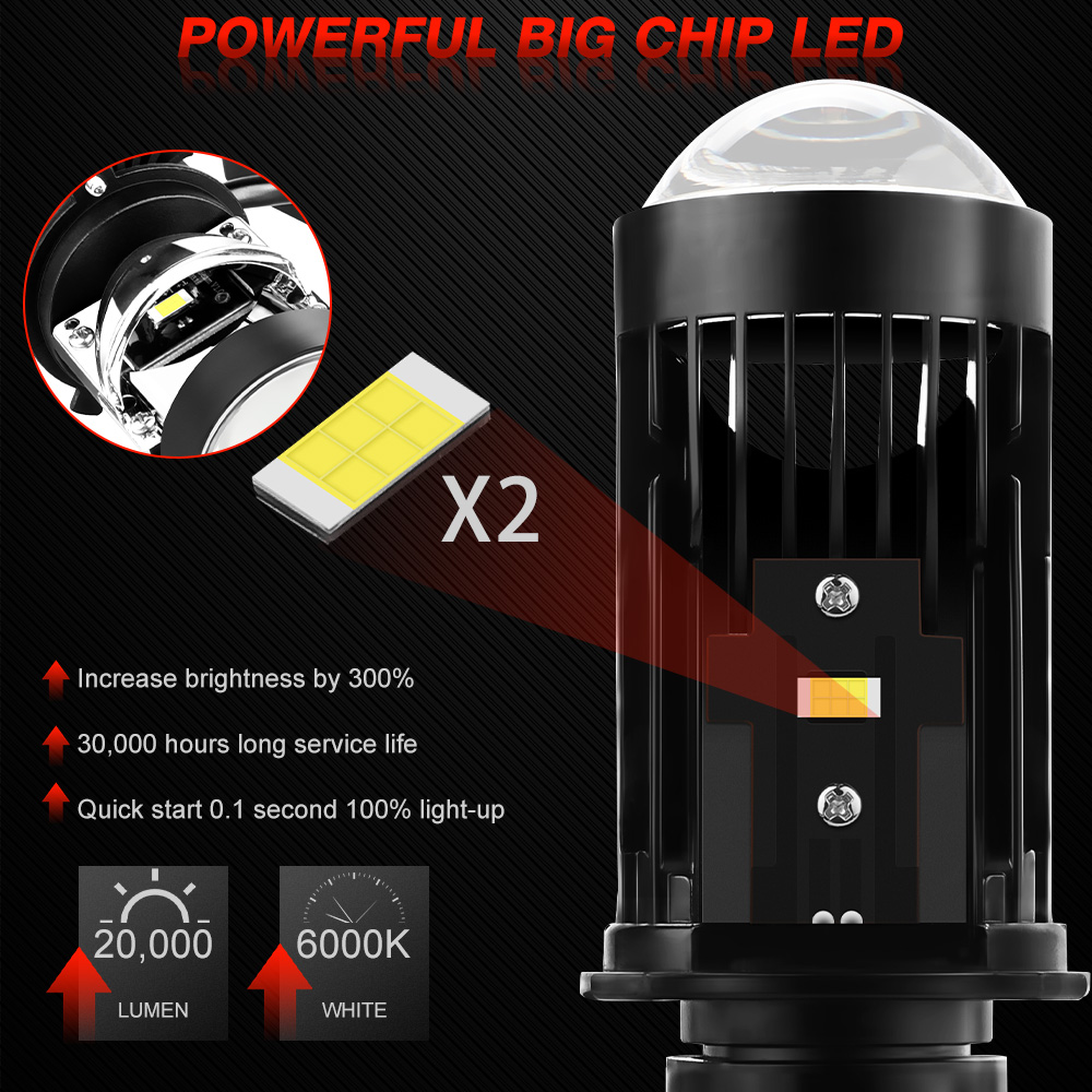 New Upgrade. Super Bright. Much brighter than normal halogen lamp and old version LED H4 mini lens.