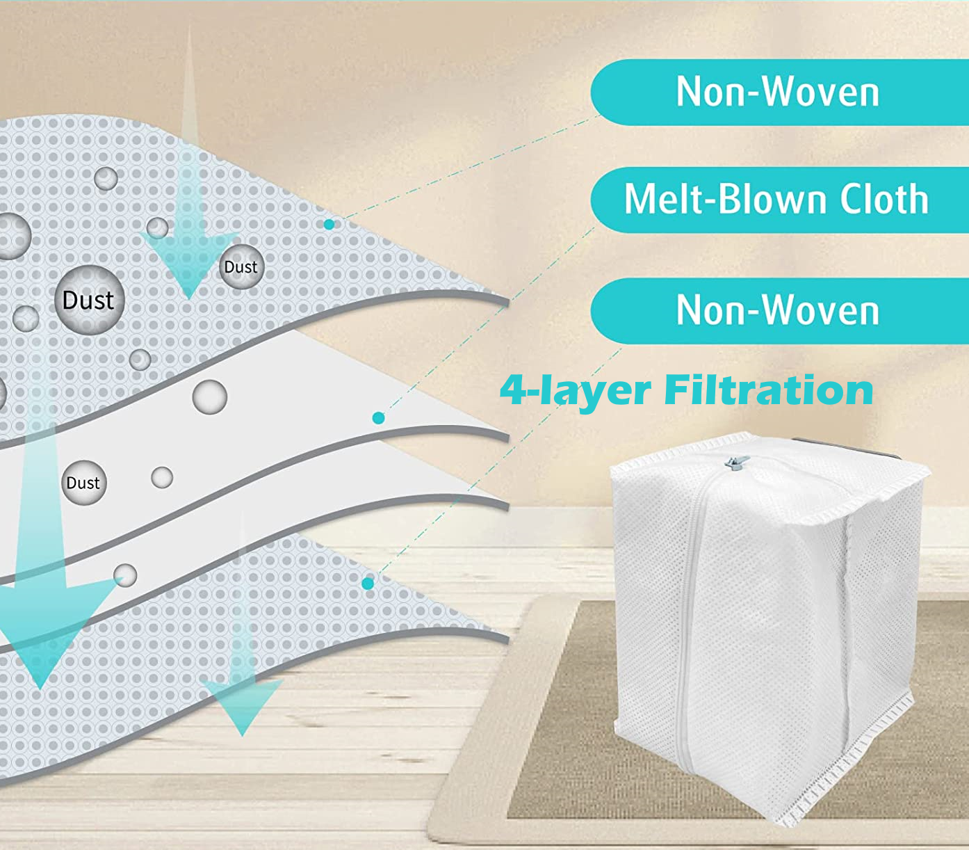 Easy to Clean: Just unzip the bag, empty the dust easily, and you have a "new" bag, remember to keep the zipper fully closed when changing.